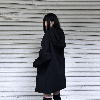 【送料無料】【お取り寄せ品】3サイズ展開 S M L 黒色 ピーコート アウター フード付きコート パーカー 韓国 ストリートファッション レディース コスプレ 衣装